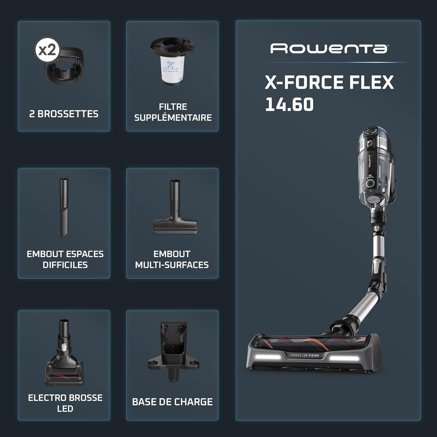 ÉlectroménagersRowenta X-Force Flex 14.60, Aspirateur balai sans fil, Puissant 550W, Autonomie 70min, Tube flexible, Accessoires pour Voiture et Poils d’animaux RH9958WA